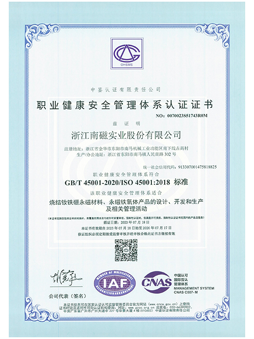 ISO 45001 Occupational Health and Safety Management System Certification Certificate